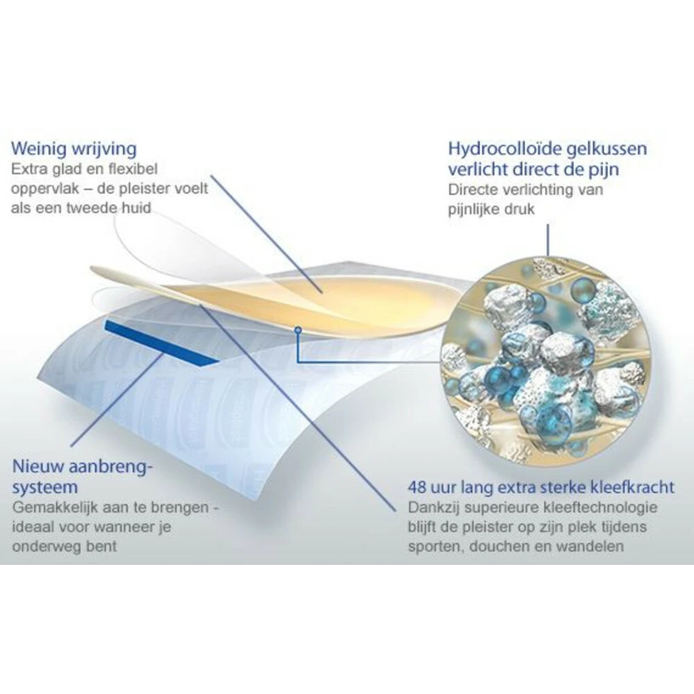 Hansaplast XL Blister PlasterZeer effectieve blaarbehandeling voor hielen, voetzolen of de bal van de voet Extra groot formaat voor grote blaren op de voetVerlicht onmiddellijk pijn van grote blarenBiedt een veilige bescherming tegen vuil en bacteriën Extra sterke kleefkracht: tot wel 48 uurZorgt voor snellere genezing dankzij de hydrocolloïde technologie