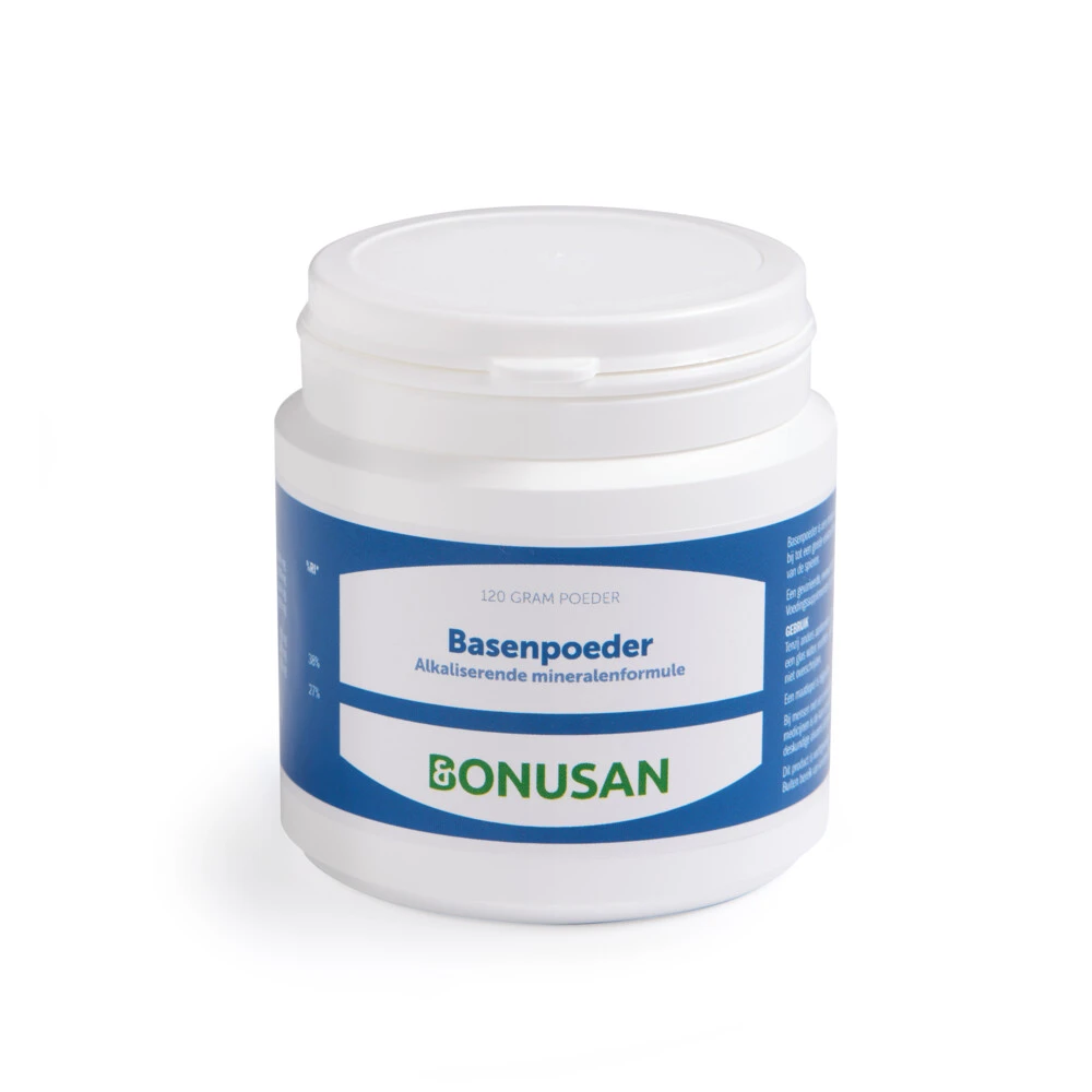 Bonusan BasenpoederBasenpoeder van Bunusan is een makkelijk oplosbare mineralenformule met kalium, natriumbicarbonaat en magnesiumcitraat. Basenpoeder bevat onder andere magnesiumcitraat, dat bijdraagt aan de vermindering van vermoeidheid. Kalium en magnesium dragen bij aan de normale werking van het zenuwstelsel en de spieren. De werking van magnesium en Kalium:Kalium draagt bij tot de instandhouding van de normale bloeddrukKalium draagt bij tot de normale werking van het zenuwstelselKalium dra
