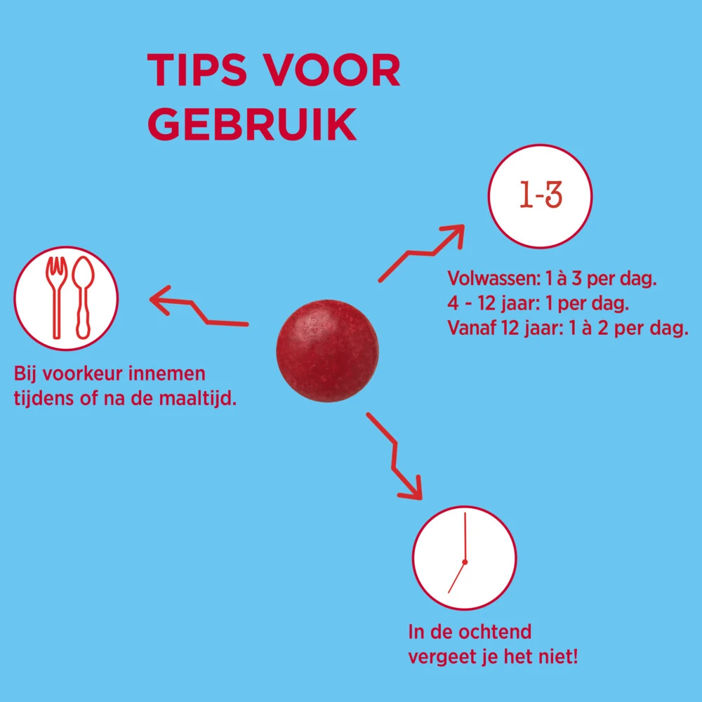 | Volumevoordeel | 1 x 500 dragees, 2 x 500 dragees |