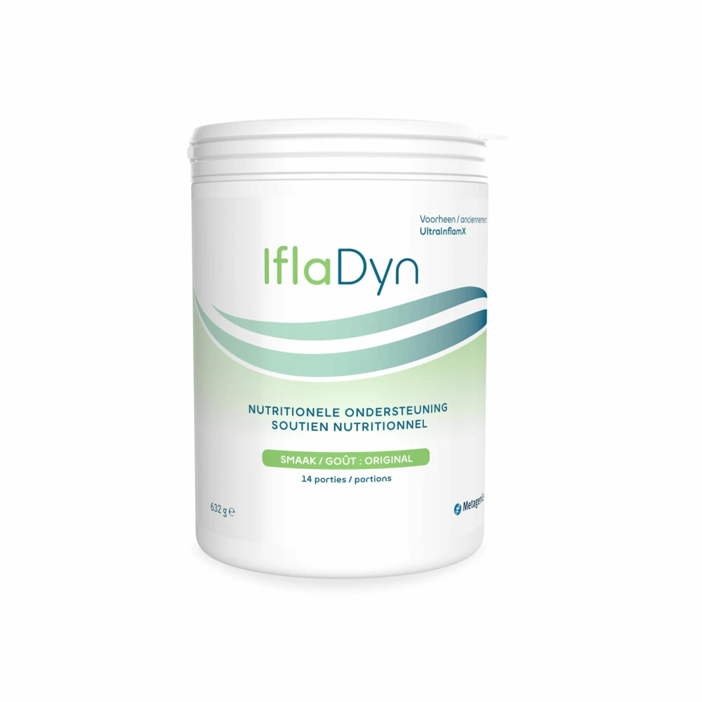 Metagenics IlfaDyn Original PoederIlfaDyn Original Poeder van Metagenics draagt bij tot gezonde spieren en gewrichten. Deze sportdrank is een volledige mix van erwt- en rijstproteïnen, koolhydraten, vetten, vezels, vitamines, mineralen, L-glutamine en fytonutriënten. Metagenics IlfaDyn Original Poeder kan als maaltijdvervanger gebruikt worden.Bevat L-glutamine: een voorwaardelijk essentieel aminozuurSalix alba, Curcuma longa en Boswellia serrata: dragen bij tot gezonde spieren en gewri