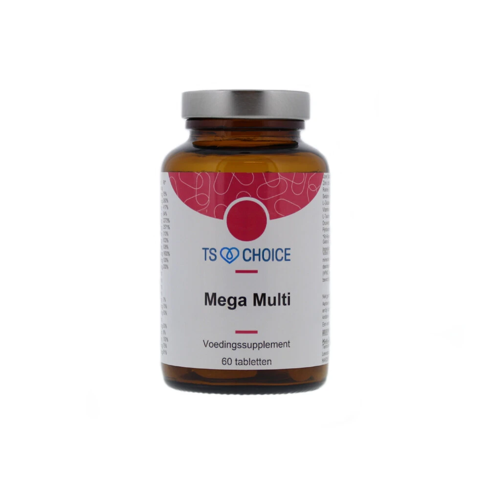 TS Choice Mega MultiTS Choice Mega Multi is een hoog gedoseerde complete vitamine- en mineralenpreparaat. De meeste mineralen zijn aminozuurgebonden, waardoor de opname wordt verbeterd. Ook de toegevoegde plantaardige stoffen verbeteren de opnamen van de vitaminen en mineralen. Daarnaast bevat Mega Multi de belangrijkste antioxidanten.TS Choice Mega Multi werd voorheen verkocht onder de naam Best Choice Mega Multi. Alleen de naam is gewijzigd, de samenstelling niet.Hoog gedoseerd vitamine en min