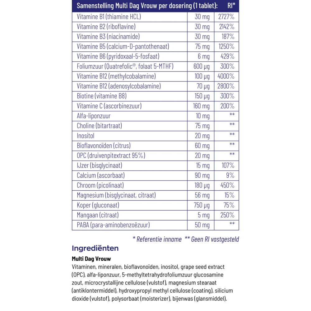 Artikelnummer: CGXLA 1023963 Categorieën: Vitamine & mineralen, Vitaminen vrouw