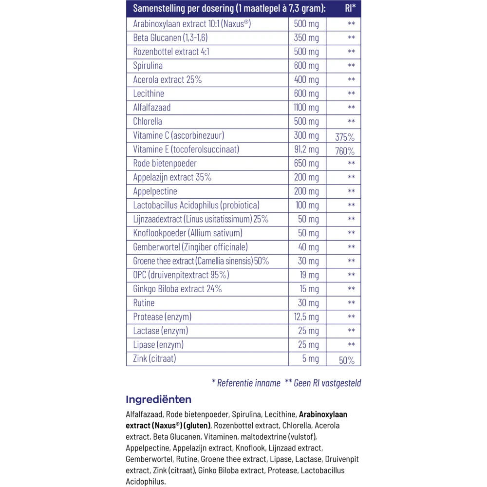 Vitakruid Super Greens 2-PackVitakruid Super Greens is een voedingssupplement met een veelzijdige, organische formule van hoogwaardige, pure extracten. Super Greens bevat vitaminen, mineralen, sporenelementen, antioxidanten, aminozuren, enzymen en OPC, ook bekend als druivenpitextract. OPC heeft de eigenschap om de opname van andere werkzame bestanddelen te versterken. Daarnaast is de probiotica een waardevol nutriënt binnen de Super Greens formule.Weloverwogen mix van gezondheid bevorderen